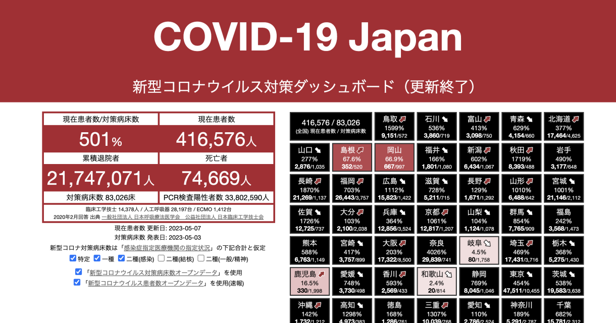 COVID-19 Japan 新型コロナウイルス対策ダッシュボード #StopCOVID19JP