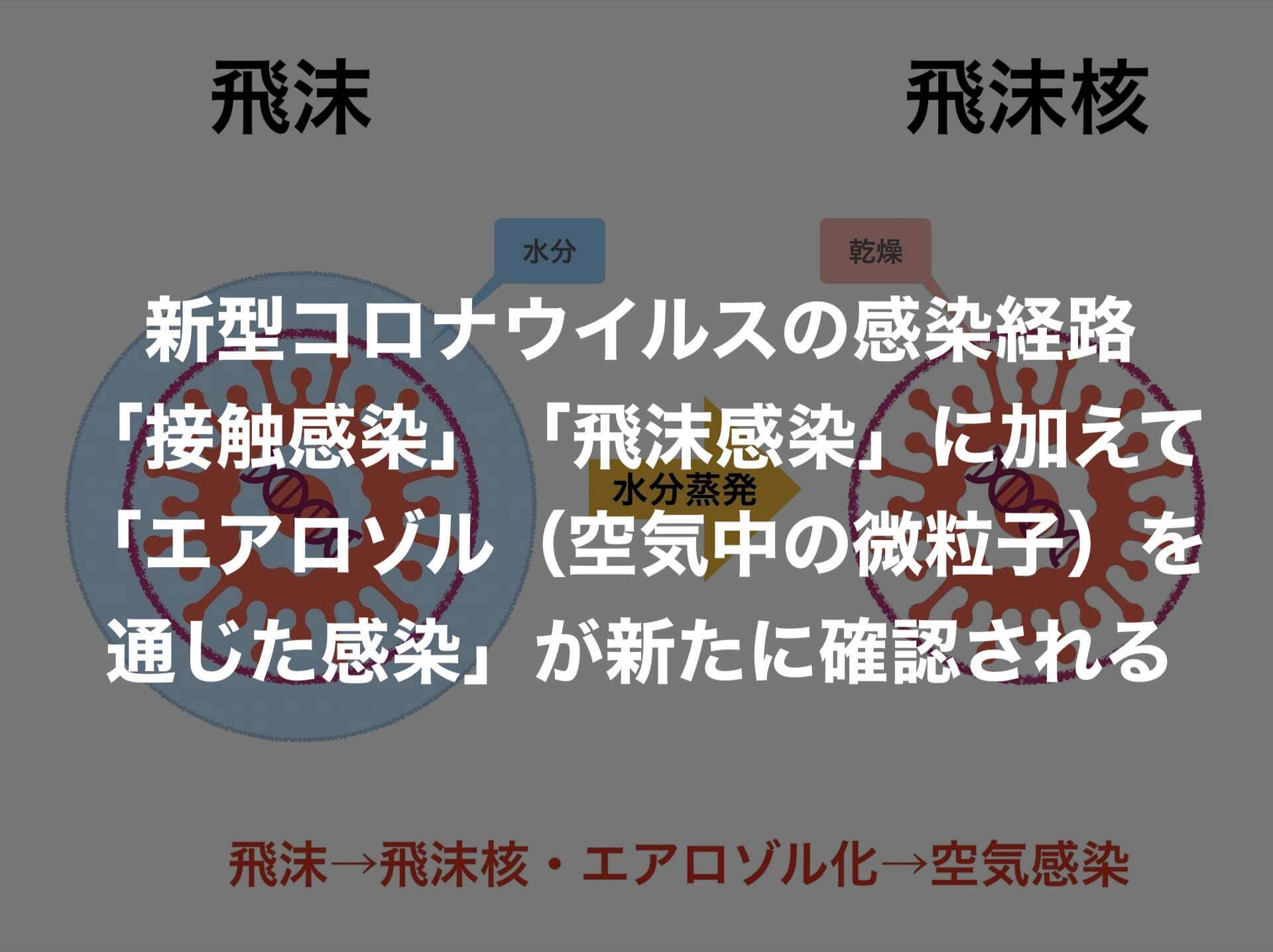 この点は、厚労省の指針でも、まだ踏み込んでいない部分です。厚労省は現在でも、「主に飛沫・接触感染」だといっています。