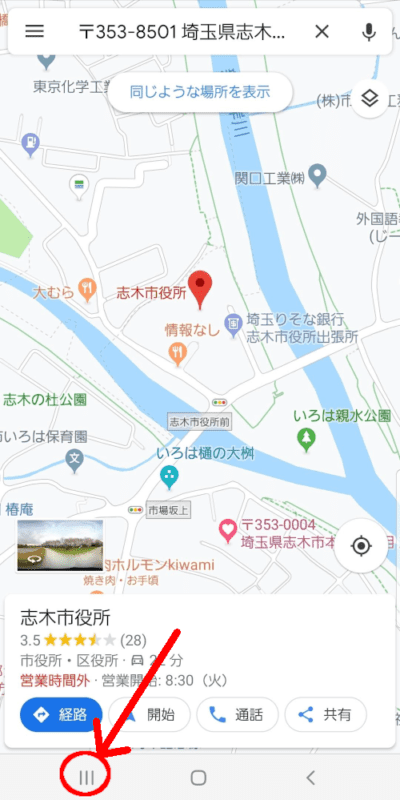 (2)画面に戻るがない場合、Androidでは画面下の「←」「<」を使う
