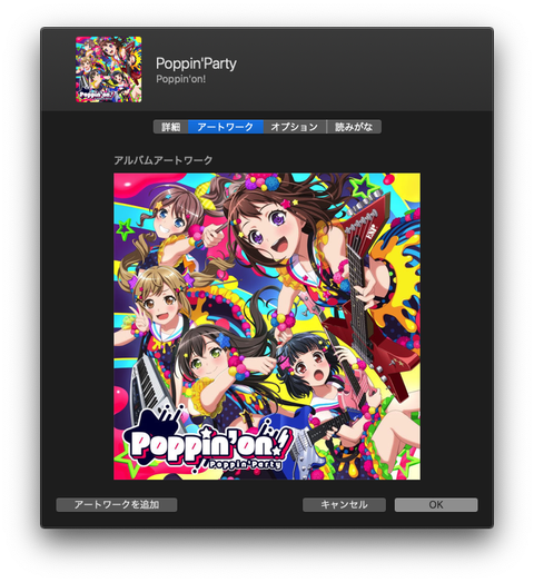 - ジャケ写が自動で追加されなかったため、自分でネットから探してジャケ写を追加